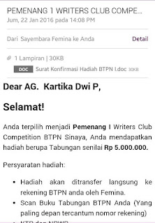 Dan Januari kemarin, aku mendapatkan email ini: